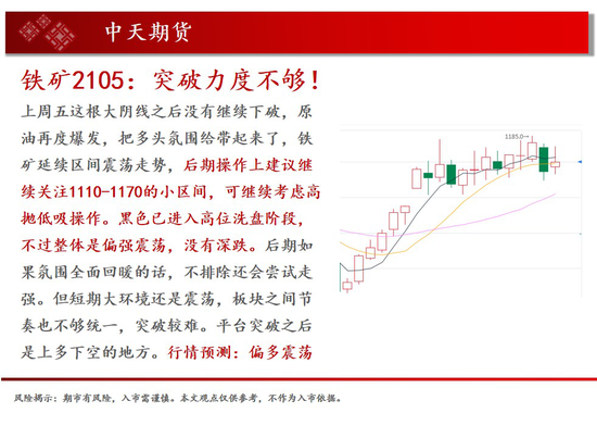 操作建议:后期操作上建议继续关注1110-1170的小区间,可继续考虑高抛低吸操作。黑色已进入高位洗盘阶段,不过整体是偏强震荡,没有深跌。行情预测:偏多震荡