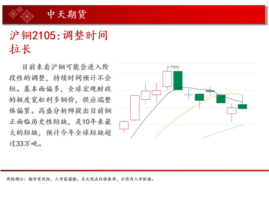 操作建议:目前来看沪铜可能会进入阶段性的调整,持续时间预计不会短。