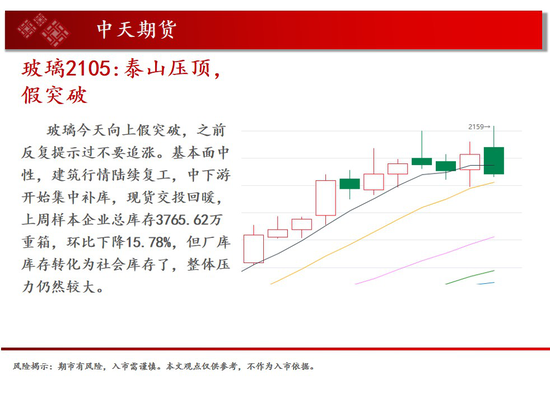 操作建议:玻璃今天向上假突破,之前反复提示过不要追涨。