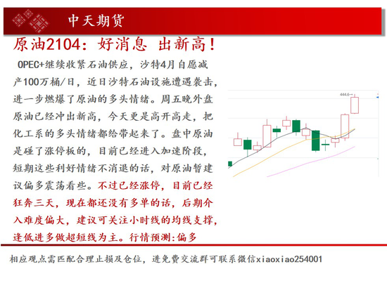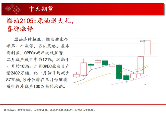 操作建议:原油连续拉涨,燃油迎来今年第一个涨停,多头策略。