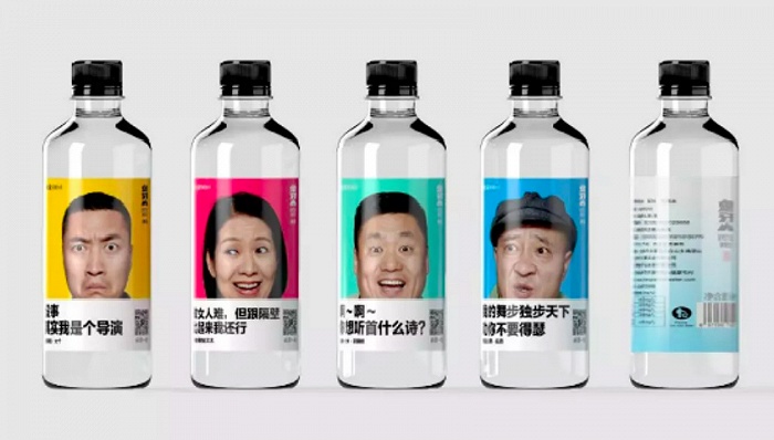 不只是盲盒,2019年的《乡村爱情12》推出了 “象牙山冰泉”,瓶身包装上印有本山系明星的头像和二维码,一共有24个明星,每人录制12个幽默短视频,共计288个视频。
