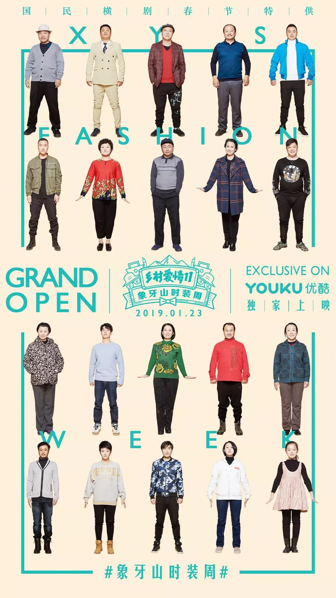 除了网友自制的表情包,官方宣传的物料,也开始往文艺潮流方向靠拢,比如“象牙山时装周”,刘能、赵四、谢广坤手里拿着的是玉米、茄子和辣椒。