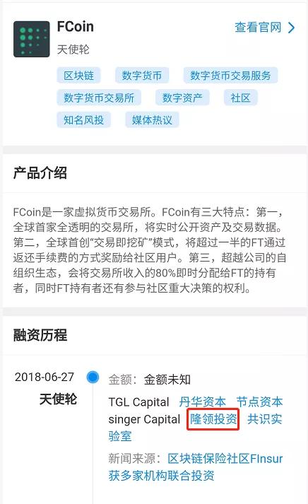 不过,这并没有动摇蔡文胜涉足区块链的决心。据企查查数据显示,由蔡文胜创办的股权投资机构,隆领投资在2018年6月参与了FCoin的天使轮融资。