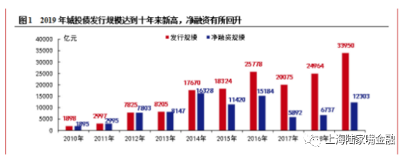 当下,从最早1993年上海城市建设投资总公司发行第一只城投债“浦东建设债”算起,城投债已经走过了28年的发展历程,据Wind数据显示,截止2019年存量城投债规模为8.5万亿。2019年各品种城投债发行数量总计达到4,098只,融资规模33,905.72亿元。发行规模达到十年来新高。