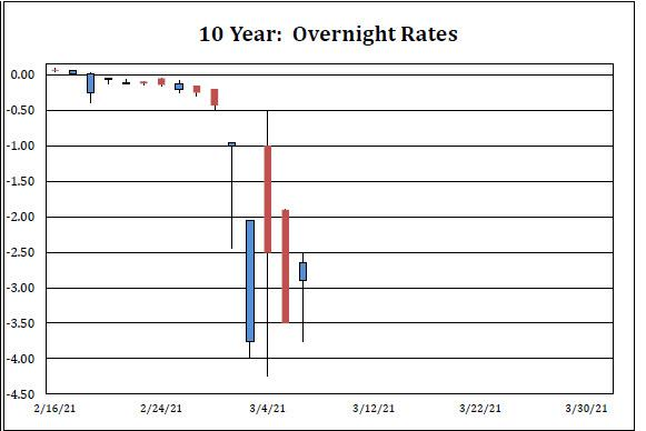 斯凯姆还发现了一个更有趣的现象:对比10年期美债的隔夜平均回购利率和3月15日结算的期限市场,会发现后者的回购利率与前者同步,这意味着市场已经不知道该如何定价10年期美债了。