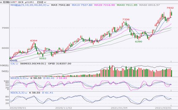 征稿(作者:建信期货 余兰兰)--春节以来,油脂期价稳步上行,节后受假期外盘上涨提振直接跳空高开,持续走高至今。三大油脂涨幅超过1500点,涨势又快又猛,根本没有像样回调,豆棕2105价差也逐渐逼进2016年7月份的高点。宏观通胀预期更是火上浇油,助推油脂价格自2020年4月份以来不断创新高。当前三大油脂依旧在不断接力领涨,各领风骚,从后期基本面分析来看,我们认为还是易涨难跌。