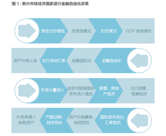 随着对新兴经济体贸易逆差的出现,美国利用国际货币基金组织作为手段,按照“华盛顿共识”,要求新兴市场经济国家进行金融自由化改革,当这些国家开放金融、金融自由和国际化之后,实行浮动汇率,国际资本大量流入,导致资产价格上涨。资产价格的上涨,外资大量流入,短期国内资本也流入,在国际资本的推动下,出现股票、房地产的泡沫,日本、韩国和东南亚几国就是典型的例子。