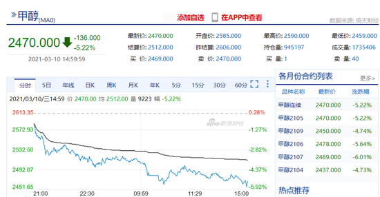 截至3月10日收盘,甲醇2105主力合约收报于2470元/吨,下跌5.22%。当日郑醇2105主力合约总成交量为173.5万手,较上一交易日增加了30.9万手;总持仓量为94.5万手,较上一交易日减少了2.67万手。