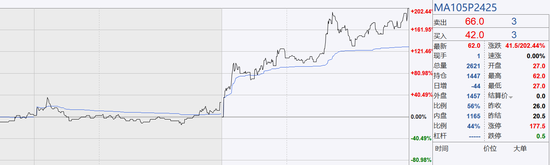当日多个甲醇2105认沽期权合约录得大幅上涨,其中,行权价为2450元/吨的甲醇2105认沽期权合约收涨180%以上;行权价为2425元/吨的甲醇2105认沽期权合约收涨200%以上。