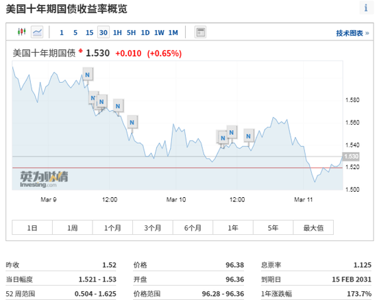 分析人士称,当日公布的CPI数据一定程度上降低了市场对美国通胀上扬的担忧,缓解了美债收益率上涨的压力。值得注意的是,当地时间3月11日还将公布240亿美元的30年期美债拍卖结果,市场仍高度关注。