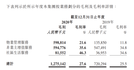 其中物业管理服务毛利率提升最大,从11.8%提高至21.6%,提高了约10个百分点。主要是由于(i)年内本集团业务规模的扩大及管理密度的提升,规模经济效应显现; (ii)实施了一系列的成本控制措施,包括优化员工配置,通过集团采购有效控制成本,及实施精细化管理;以及(iii)受年内新冠疫情影响 而获得的社保减免。