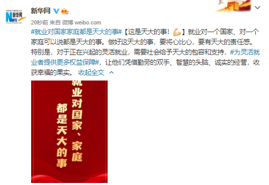 #就业对国家家庭都是天大的事#【这是天大的事![加油]】就业对一个国家、对一个家庭可以说都是天大的事。做好这天大的事,要将心比心,要有天大的责任感。特别是,对于正在兴起的灵活就业,需要社会给予天大的包容和支持,#为灵活就业者提供更多权益保障#,让他们凭借勤劳的双手、智慧的头脑、诚实的经营,收获幸福的果实。