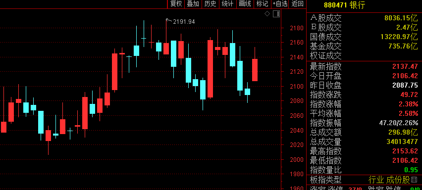 在近期大盘深度调整中,银行板块无疑成为市场的“主心骨”,今日银行板块再度高开高走,所有个股上涨,板块指数一度大涨逾3%,成为大盘反弹的主要推手之一。长沙银行大涨7.29%,杭州银行也飙升6.78%,成都银行、江苏银行、招商银行等纷纷大涨5%以上。