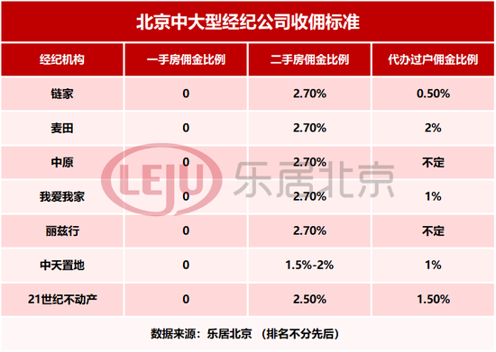 摸底北京7大中介:最高2.7%