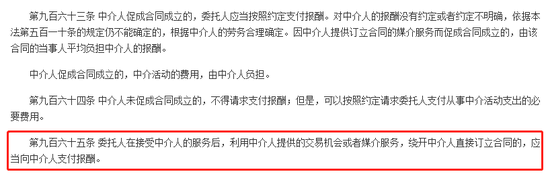 根据2021年实行的《民法典》第九百六十五条规定:委托人在接受中介人的服务后,利用中介人提供的交易机会或者媒介服务,绕开中介人直接订立合同的,应当向中介人支付报酬。
