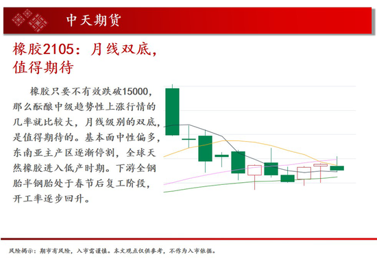 操作建议:橡胶只要不有效跌破15000,那么酝酿中级趋势性上涨行情的几率就比较大,月线级别的双底,是值得期待的。