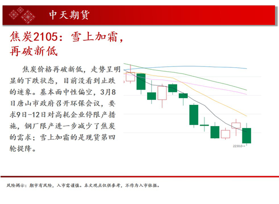 操作建议:焦炭价格再破新低,走势呈明显的下跌状态,目前没看到止跌的迹象。
