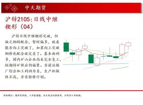 基本面概述:基本面利多,国内矿山企业尚未完全复工,短期锌矿供应仍偏紧。当前冶炼厂综合加工利润为负,生产积极性不高,并有检修计划。
