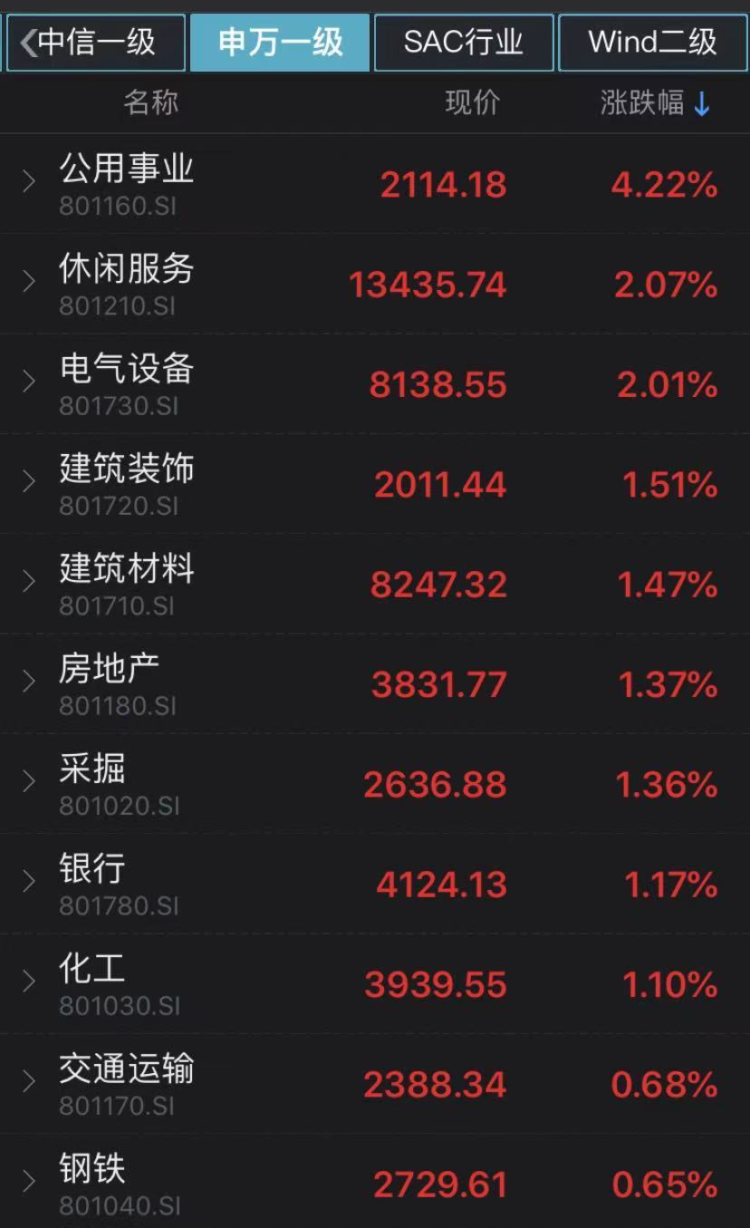 顺周期中的采掘、化工、钢铁等板块延续强势。