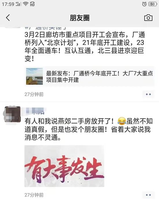 其实早在3月8日下午,燕郊区域二手房销售的部分从业人员朋友圈就有限售即将放开的信息释放。