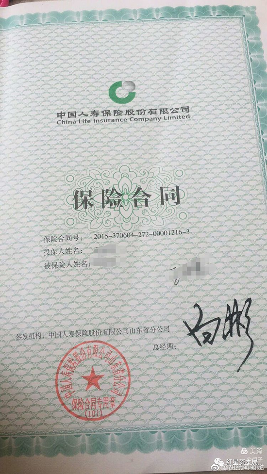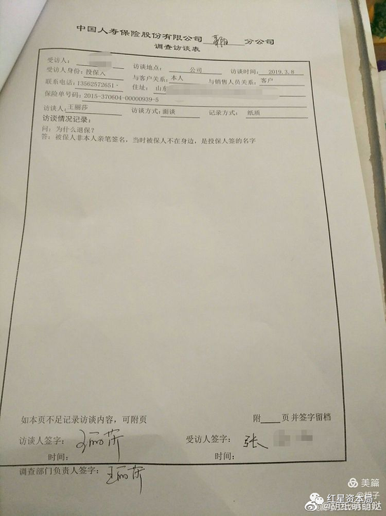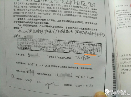 “中国人寿莱阳支公司的工作人员私底下来找我母亲去签字退款,因为这150元,对方竟又忽悠我母亲差点再一次糊里糊涂签字,这彻底惹恼了我!”胡泽昌对红星资本局说到。