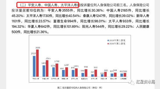 中国银保监会消费者权益保护局发布的《关于2020年第二季度保险消费投诉情况的通报》《关于2020年第三季度保险消费投诉情况的通报》,中国人寿的被投诉量均位列人身保险公司的前三。