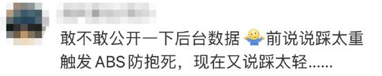 对于当天售后工作人员驾驶车辆时出现的情况,这位负责人解释:“现在的车都有ABS系统,就是防自动抱死,你一脚把刹车踩下去,可能刹车车轮抱死,会出现更严重的交通事故,ABS防抱死就会帮你点刹,当时的现场情况可能没法让车在很短的距离之内能够把车完全刹住。”