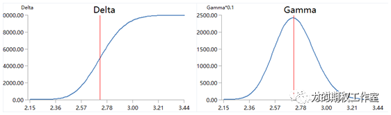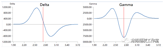 在上图中,我们发现Delta的图形是中心对称的,非常类似我们高中时代提及的奇函数,而Gamma的图形呢,它是轴对称的,非常类似以前学过的偶函数。