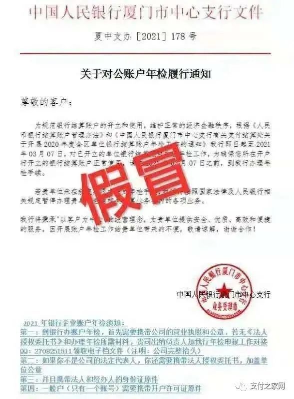 支付之家网近日,中国人民银行广州分行、厦门市中心支行等多地人行发布风险提示信息,指出有不法分子伪造官方文件向企业发账户年检通知,提醒企业切勿上当受骗。