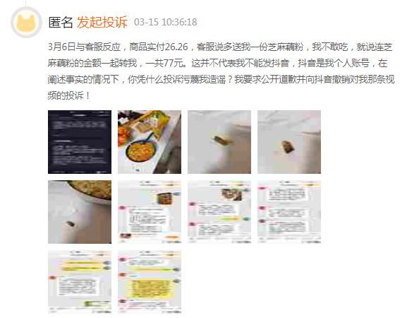 王女士认为,自己虽已接受李子柒方面关于问题食品的退赔,但并不意味不能对此事予以曝光,且抖音是其个人账号,在基于事实的前提下,李子柒投诉其“污蔑造谣”,是在侵害自己的合法权利:“我要求李子柒公开道歉并向抖音撤销对我那条视频的投诉!”
