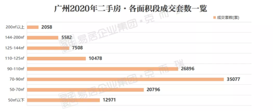 2020年,广州50㎡以下面积段的二手房成交达1.3万套,同比增长了92.5%,几乎翻了一番。(据克尔瑞)
