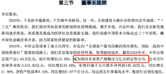 18日晚间,中信证券发布2020年年报。这份年报显示,截至去年年末,中信证券的总资产已经达到1.05万亿。