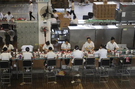 贵州茅台酒厂内,工人在包装茅台酒图源视觉中国