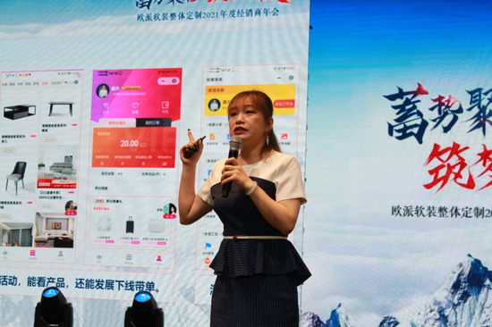 会上,欧派集团信息化刘丽娟经理向欧派软装代理商深度分享集团信息化推进成效,深度解析了信息化如何协助商场解决缺客流/转化低/难规范的问题,如何实现拓客引流/销售/设计/下单/送货安装/售后服务全流程智能管理,大大提振与会代理商信心,同时提到,针对欧派软装量身打造的MTDS系统下单系统、全民引流小程序、学习平台将在六月前实现全部上线,信息化平台的打造将成为欧派软装的创新引擎,助飞终端销售的超速增长!