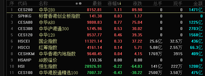 其实港股市场表现也相对强势,主要指数多数上涨。