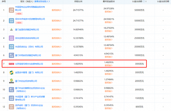 股东信息显示,中国国有企业结构调整基金有限公司、深圳华侨城资本投资管理有限公司均持股比例约24.7%,为基金大股东。而北京泡泡玛特文化创意有限公司则持股比例约1.48%,认缴出资额为3000万元,位列第七大股东。