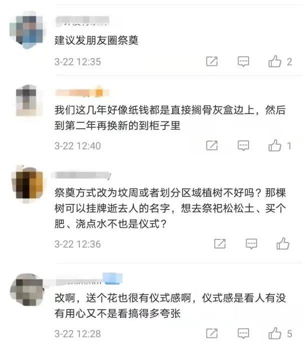 也有声音认为,这是移风易俗的好时机,如果只是为了节日的仪式感,完全可以用植树、摆放鲜花等方式来替代,以寄哀思,近年兴起的“云祭扫”也不失为一种替代方式。