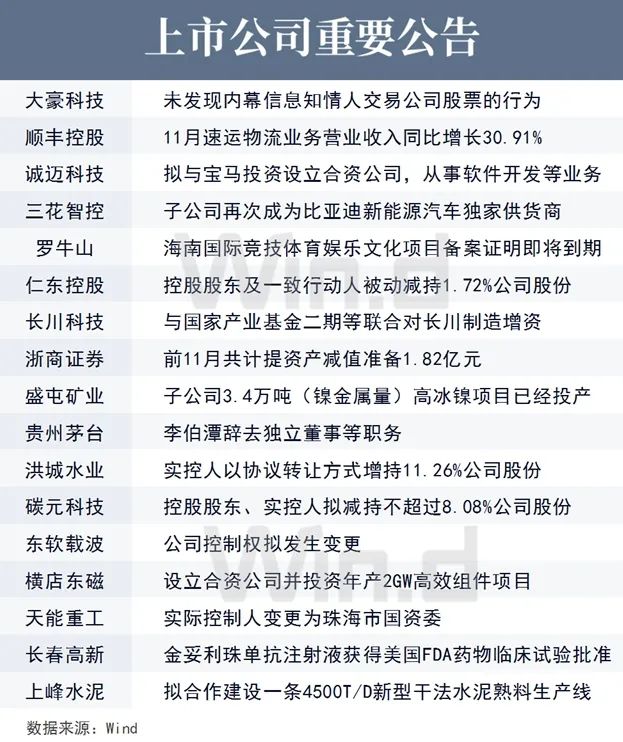 热点聚焦 1、中央经济工作会议:明年宏观政策要保持连续性、稳定性、可持续性;要继续实施积极的财政...