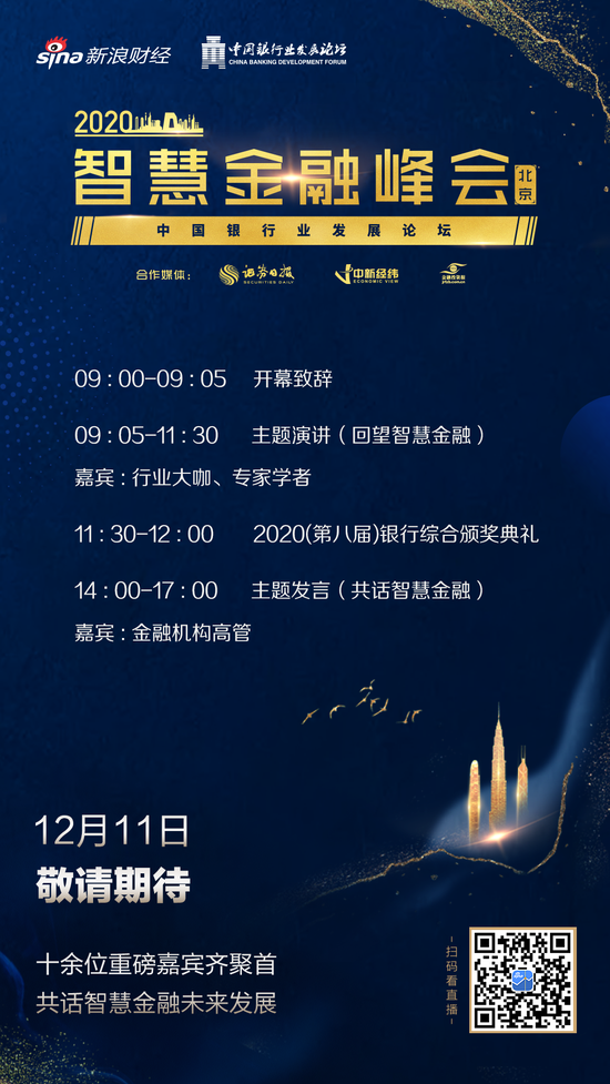 "2020中国银行业发展论坛智慧金融峰会"12月11日召开
