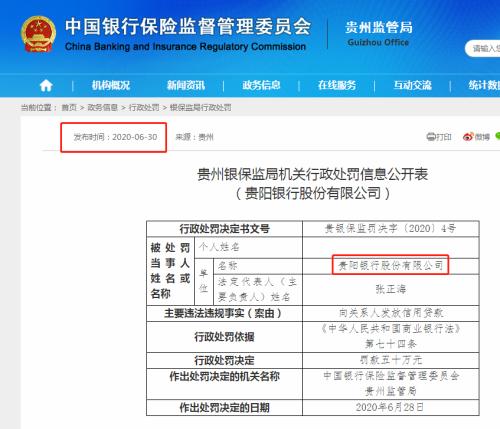 巧合的是,在6月30日,贵阳银行及相关责任人也收到了合计10张罚单,违法违规实施涉及向关系人发放信用贷款、以贷还贷掩盖不良等问题。