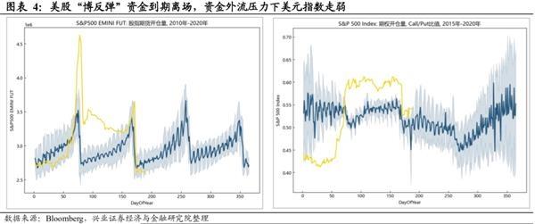 美元滞后反映联储宽松的背后:抄底资金到期离场。如何理解美元走势和货币政策的背离?一方面,3月中上旬美国发生流动性宽松危机,美元避险属性主导其走势,换言之,除了美元外其他资产均遭到抛售(详参3月23日《本轮美国金融危机的起因、现状与展望》)。另一方面,3月23日美联储宣布购买信用债等“火箭筒”措施救市,市场信心快速修复,大规模资金进入美股抄底,无论从标普500股指期货的开仓量,还是期权的Call/Put比值来看,进入美股市场的资金量显著高于往年均值。这部分抄底的力量,推升了美股的估值,推动美股大幅反弹,也对美元形成支撑(详参7月10日《钱从哪里来?增量还是存量市场?》)。