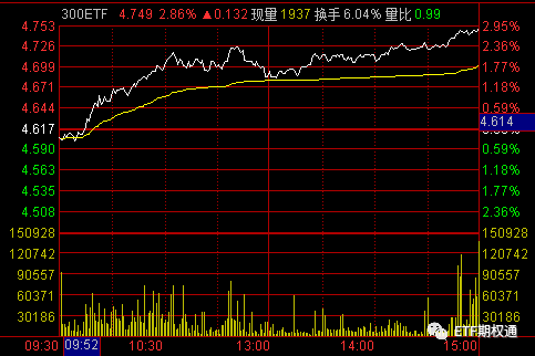 期权标的今天上午小幅低开,随后开始反弹,涨的速度飞快,上午快收盘震荡到接近日内均线时,下午再次拉高,再下一城,全天大涨~~