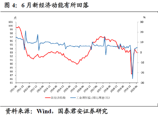 从新经济动能的成分指标来看,6月电子计算机整机产量和微型电子计算机的同比增速分别下滑了24个百分点和22个百分点。进口虽企稳,但连续数月未见好转。而往后看,新经济动能何时回暖将取决于下半年海外经济修复的程度。此外,我们需要持续关注中美关系的边际趋紧。近日美国对中国高技术密集企业的打击和制裁动作频频。若中美关系导致新兴产业关键部件断供,新经济回暖可能不及预期。