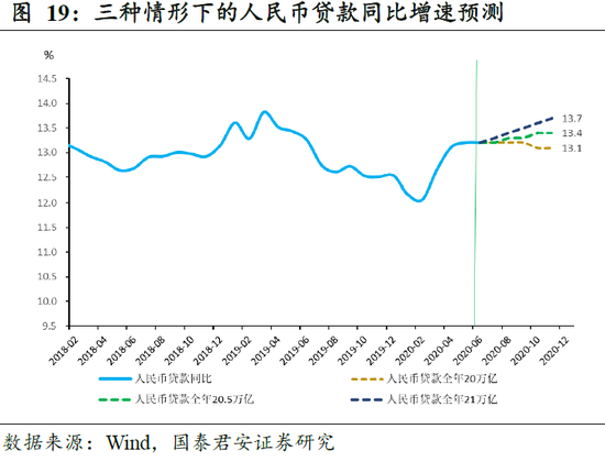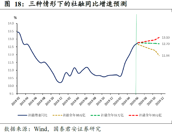 我们考察三种情形下的全年社融、信贷规模增速(图18、19):底部,中性和超预期情景分别为30、32、33万亿,20、20.5、21万亿;测算的社融增速分别达11.9%、12.7%、13.1%/、信贷增速为13.1%、13.4%、13.7%。