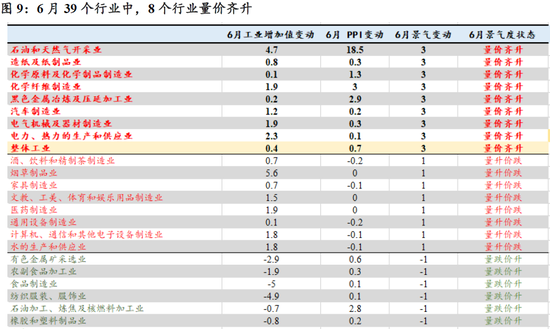 6月的整体景气量价齐升,回升幅度大于5月(图 8)。
