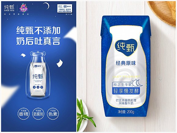 左:纯甄2017年的包装 右:纯甄如今的包装