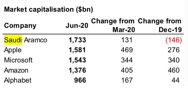 在今年6月,沙特阿美和苹果的市值差距依然超过百亿美金。