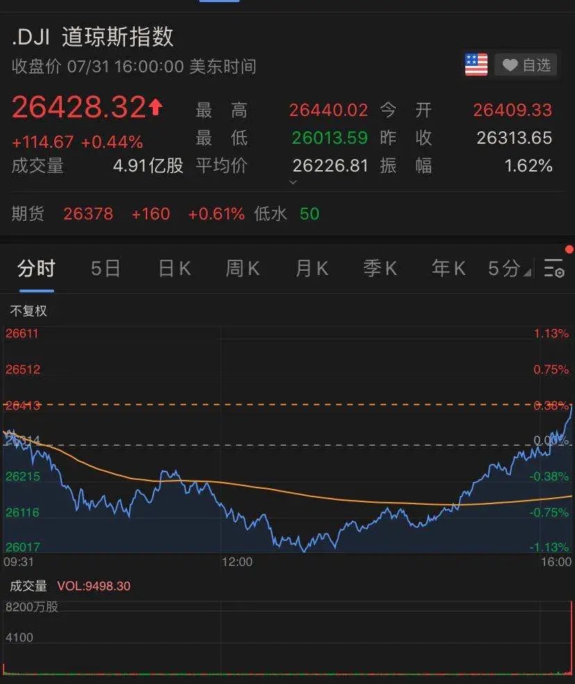 昨日美股盘中,道指一度跌超1%,但最终收涨0.44%。7月,道指上涨2.38%