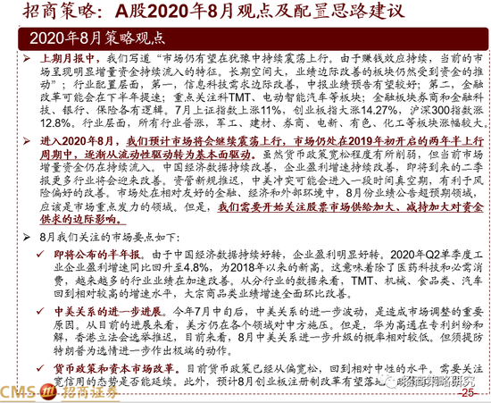 原标题:【招商策略】涨势犹在,合利而动—— A股2020年8月观点及配置建议