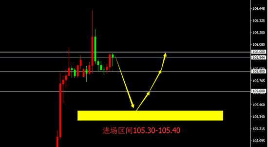 105.30-105.40区间买入,止损20点,目标105.60、105.80、106.00。